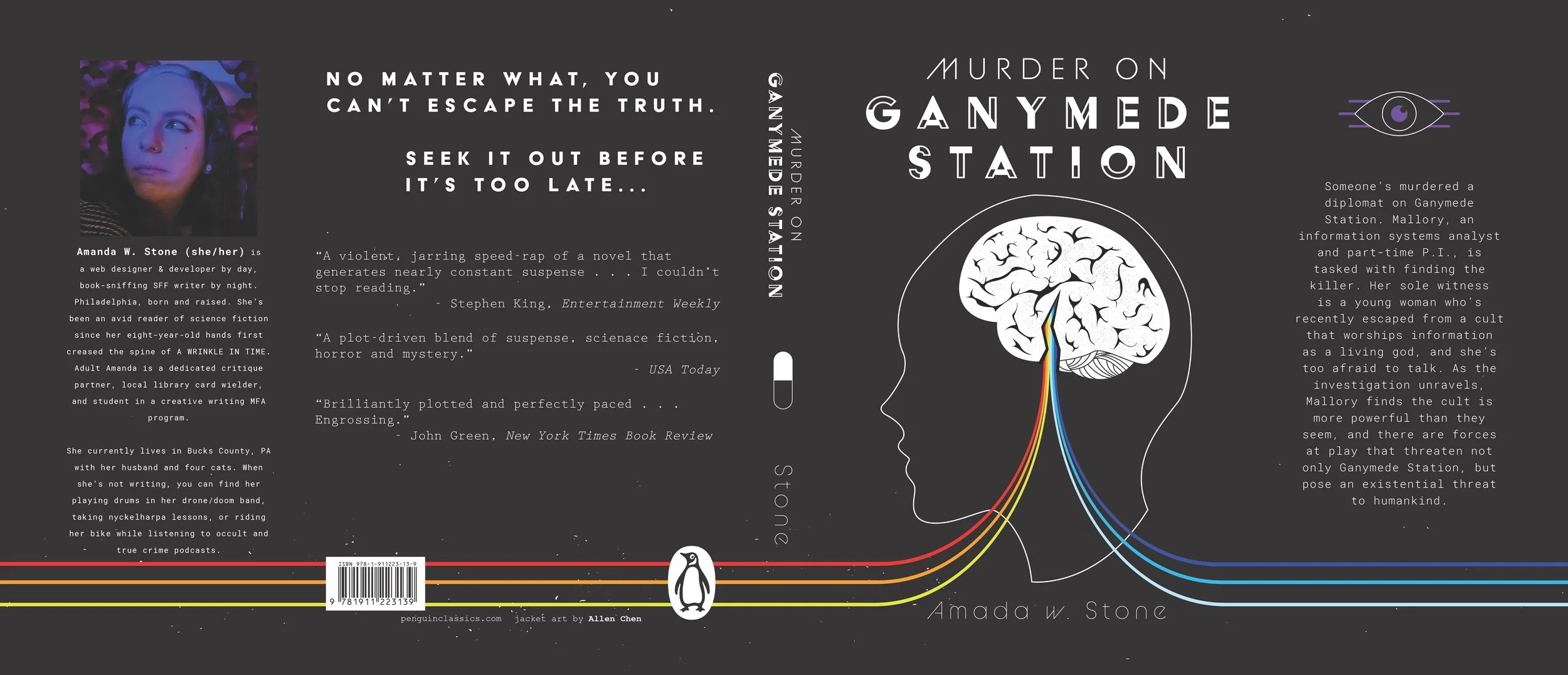 Murder on Ganymede Station is a science fiction novel by Amanda W. Stone that follows Mallory Brone, an information systems analyst and part-time private investigator who is tasked with finding the one responsible for killing a diplomat on Ganymede Station. Her only witness is a young woman who escaped from a cult that worships information as a living god. As the investigation unravels, Mallory finds the cult is more powerful than it seems, and there are forces at play that threaten not only Ganymede Station but also humankind itself.